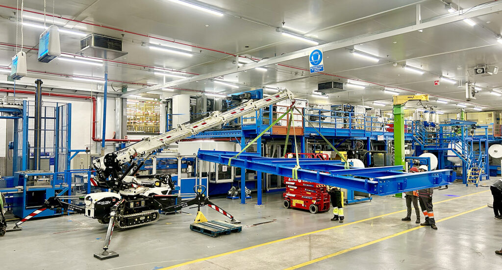 Las minigrúas araña telescópicas son capaces de trabajar en espacios reducidos y naves industriales. Esto permite la realización de maniobras destinadas a movimiento de maquinaria industrial de gran tonelaje con poco esfuerzo.